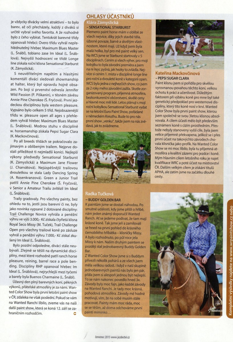 V červencovém čísle časopisu jezdectví vyšel článek o